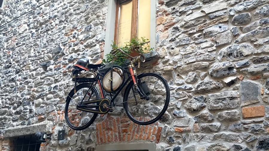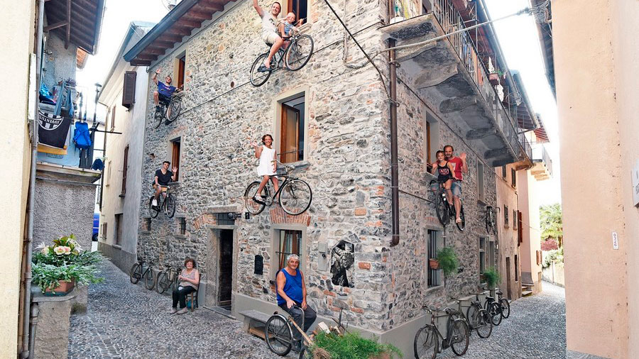 В деревушке Сан-Джованни в Белладжио плотник Иван Джилардони, любитель старинных велосипедов, превратил свой дом в туристический аттракцион, повесив на фасаде так называемые "парящие велосипеды".